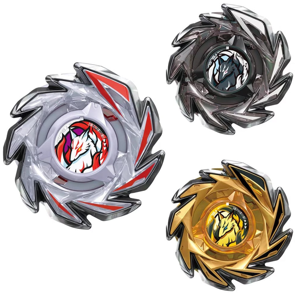 3種類すべてが、新ブレード「フォックスブラッシュJ」がセッティングされ、異なるカスタマイズで特別カラーのベイブレード。